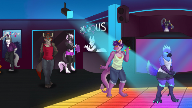 Thrust yourself to the front of the line of Amorous, a bustling furry night club that invites you to explore it’s neon lights and eccentric characters. Immerse yourself with a fleshed out character creator and treat yourself to a varied cast of potential dates to explore! Amorous is a furry dating simulator which aims to provide a high quality graphic novel experience for free. Shake up the formula with animated NPCs, sandbox environments, real choices and interactive mini-games to keep you engaged. Avoid the normal pitfalls of dating games with an incredibly varied roster. Ranging from foxes to felines, male to female and everything in-between. So what’s in it for me?