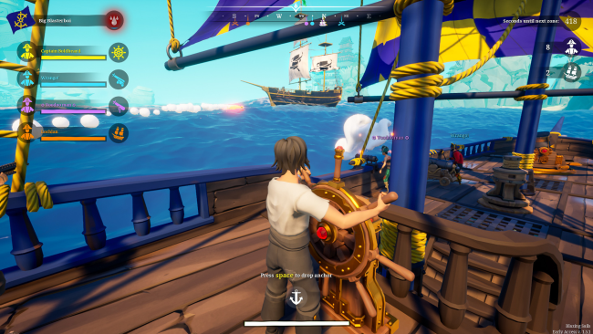 Our Battle Royale Game-Mode offers a unique take on the genre. Enjoy a dynamic mix of swashbuckling on dry land and epic naval battles! Sink every other crew to emerge victorious. Tired of looting? No problem! Jump straight into the action in our all new Galleon Conquest Game-Mode. Experience movie-like broadside battles with the Galleon! Frag pirates, sink other ships and capture flags to win! Part of the ship, part of the crew. Who knew being a pirate actually takes teamwork? Well, it does! Along with your fellow crew members you’ll need to steer, repair and re-supply your ship while besieging enemy crews. Communication and cooperation are essential to secure a victory! A variety of ship types offer distinctly different play styles for your crew. The Brigantine is the classic – with a hull that can take a pounding and some serious firepower. The Junk Ship is smaller, faster and packs a front-facing cannon for daring head-on assaults! And the Bomb Vessel is especially powerful at long distances with its unique mortar cannon. Change your playstyle based on the weapons you plunder. Take to the crow’s nest with your trusty sharpshooter, or board an enemy ship with the legendary life-stealing Sword of the Sea! Like something more explosive? Try the shoulder-cannon or fish-launcher. To each their own!