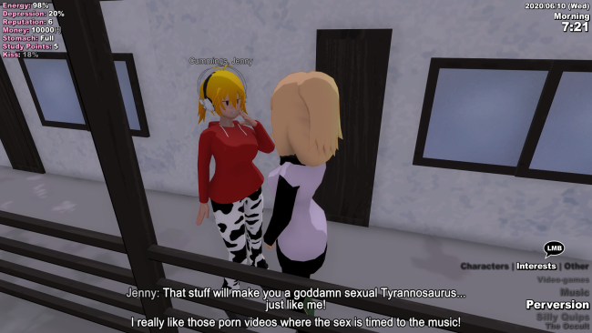 - Many character traits that can be mixed and matched (tsundere, pickpocket, kuudere, vegetarian, chuunibyou, masochist, introvert, etc.)