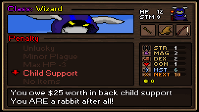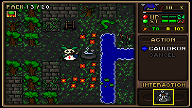 - Easy to learn control scheme: One of the things that keeps me from playing traditional roguelikes very much are the complex keys to figure out. In Equin: The Warren Peace, every action is tied to a context menu that pulls up by pressing the Space Bar. Near a well and next to a door? Press space to have the option to either drink the well water, fill an empty bottle, or enter the building. No more 1,000,000 keyboard possibilities. “Fight monsters, not the controls!”