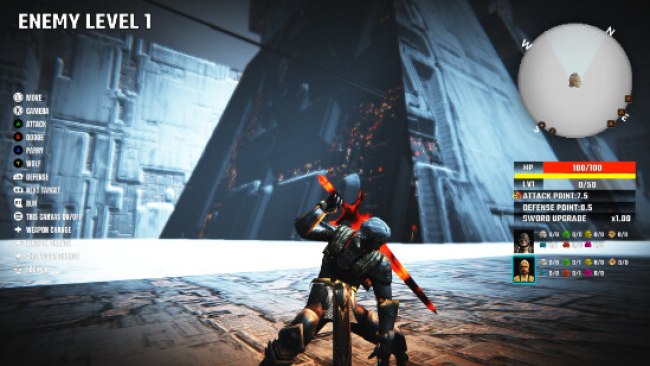 This game is a Soul-like swordplay game where you fight from morning to night, switching between two characters depending on the situation. As a knight employed by a futuristic city, you need to fight smartly and avoid taking as much damage as possible in order to get a good evaluation. The evaluation from the company is very strict, so if you do not fight seriously for one day, you will be fired and the game will be over. When night falls and the day ends, the company will evaluate your battles for the day. If your evaluation is B or higher, you will continue to be employed, but if it is below that, you will be fired and the game will be over. If you continue to be employed, you will then fight a boss enemy. Repeat this for five days, and defeat the boss enemy on the fifth day to reach the ending.