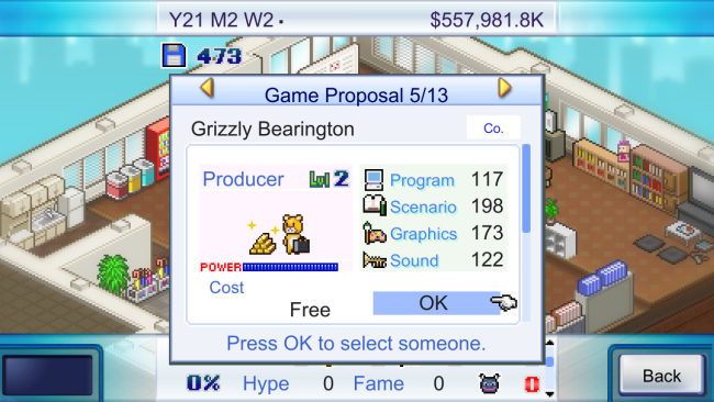 Manage your own game company and try to create a million-selling game in this unique simulation. Features the ability to develop your company’s own game console, plus a system for changing your staff members’ professions. Hire talented people and train them to develop their skills. As your staff gets more experience, you will unlock a wider array of game genres and content to develop. Try to find the most popular combinations and develop for the latest platform! Your staff members can have a variety of game-related professions, from programmer to sound engineer. Work hard and you may reach the top of the video game industry!