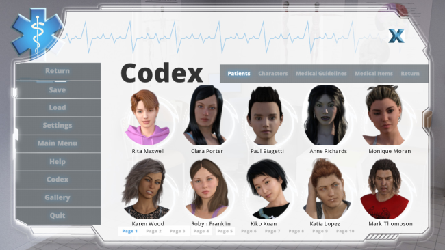 Live the everyday life of a General Practitioner: go to the clinic every day and meet new patients, develop your skills through study and manage your clinic and your staff. With dozens of items to buy and an always short budget will you be able to treat your patients in the best way? General Practitioner features a very long and deep storyline which will take you in a world of mistery and deception. Explore the game’s main story while enjoying the other activities available in town. The whole game contains more than 40 hours of gameplay and it’s growing update after update! Choices in dialogues and situations really matter! With more than 100 choices to make both in the Main Story and in medical exams you’ll experience the consequences of your actions (and in-actions as well). You decide your own fate, do you have what it takes to be a General Practitioner? The built-in romance system allows you to hang out with dozens of characters of both genders, jog with them at the local park, play a bowling game, relax at the local spa. If you are smart enough you can even make them fall in love with you and ask them to live together, unlocking special conversations and events with them. You won’t know if the date will go well or not, because that depends on fate (and your choices and comfort level of the other one). The more you build up your date’s confidence the more chance of success you will have. Each character you date has a pool different characteristics (i.e. people they like/dislike, favourite foods, informations about their family or job etc.). You’ll randomly get to know a different characteristic each time a date will go well and, since they’re random, they will be different each time you play General Practitioner or load a save game.