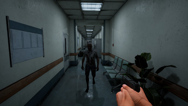 You wake up in a dizzy state only to find yourself in a nightmarish hospital overrun by a number of zombies. You need to find the keys to the front door to escape. Search the hospital for keys, equipment and consumables that could be helpful for advancing. Your sanity is affected by darkness so avoid spending too much time in unlit areas. Shoot or run from zombies to prevent getting caught.