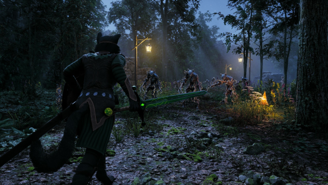 - Punishing & Satisfying Combat: Avoid damage by blocking, dashing/rolling + deflecting attacks. Win battles by combining light + heavy attacks, utilizing multiple weapon abilities, and the casting of up to 16 equipped spells at a time. Regenerate Mana by engaging in melee combat — unlock + level catlike abilities on a Feline Skill tree.