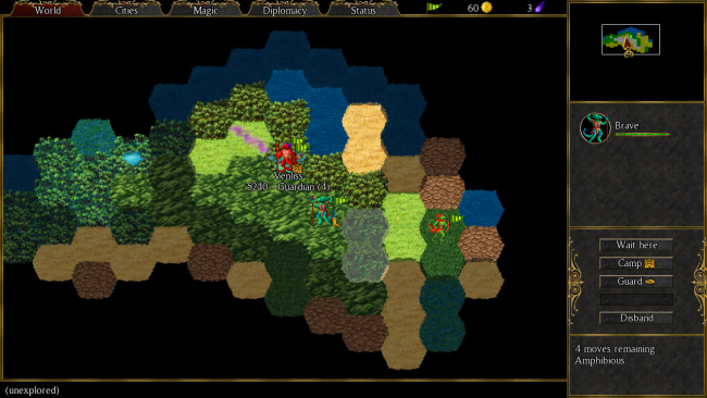 - Tactical terrain. Jungle and mountains are impassable to most units, and desert will damage them. Build watchtowers and explosives on the map, and use your magic to move mountains.