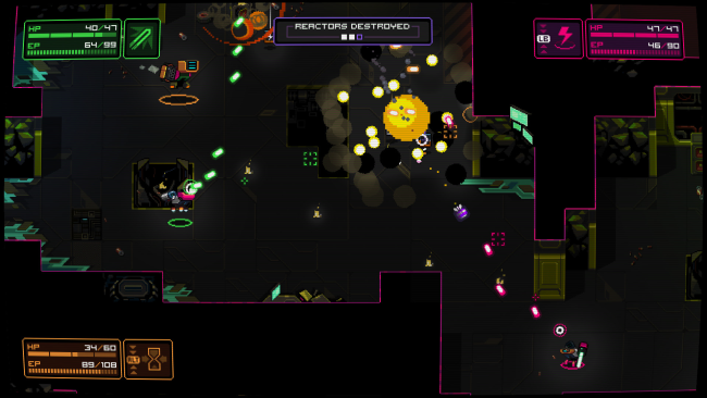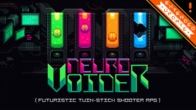 NeuroVoider is a twin-stick shooter RPG set in a cyber futuristic world about brains shooting around evil robots with nuclear rocket launchers. Battle through the horde of vigilant robots, boost your character with the smoking remains of your victims, and defeat the master NeuroVoider to end this eternal war. Play it coop with up to 4 friends, or go alone in an adventure of hack’n’slash rampage, with a pinch of rogue-lite, and some permadeath.