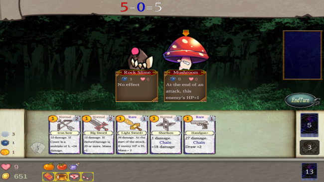 - Simple 1-turn battle: The battle system in this title is a one-turn battle in which the player’s turn begins at the beginning, and after the player’s turn ends, the enemy’s HP error from zero becomes the damage to the player, and the battle ends. If you are not careful, you will lose quickly. Experience a simple but profound battle. It is also good for brain training.