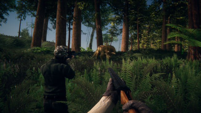 Prehistoric Hunt is the multiplayer dinosaur hunting game you have been waiting for. Join your friends on memorable hunting trips or go solo. And remember to be careful as the hunted creatures can hunt you too! Prehistoric Hunt is played on a large island. The island is inhabited by different kinds of dinosaur species. The terrain of the island varies from high mountains to dense forests and open plains. Hunt dinosaurs with your friends or do it on your own. Choose to complete varying hunting assignments to gain rewards for new equipment or freely hunt whatever you like. Find tracks on the ground or listen for dinosaur calls to catch the prey you want. Many very different dinosaur species live on the island. Some are calmer herbivores and others more aggressive carnivores. Some species also like to live in herds making finding more of them easier. Carnivores may end up eating some of the herbivores. All of the dinosaurs can be a danger to the hunter. Beware of their keen senses! Players can utilize multiple different weapons in their hunting adventure. Hunting can be done with traditional firearms but there is also an option to use tranquilizers. Some weapons have more firepower, some are quicker to handle. Players start of their hunting with a basic hunting rifle and pistol. When players complete more hunting assignments they get access to more powerful weapons. Players will also have to take into account the shooting distance to target as the bullets start to drop on longer distances. The bullets also don’t last forever.