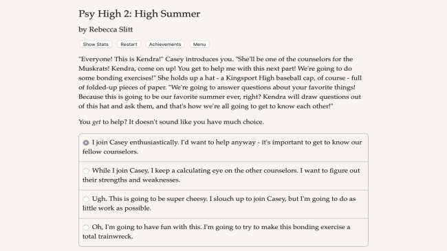 Summer is a magical time: suspended between past and future, long days and warm nights. One year after saving Kingsport High at the junior prom, you’ve graduated, and you’re working as a counselor at a sleepaway camp before heading off to college. You’re in charge of a cabin full of nine- and ten-year-olds, responsible for taking care of them and teaching them everything you know. But you’re also enjoying a summer of freedom: you’re away from your parents and on your own. Camp Cedarcrest has its share of mysteries. Why do the people in the camp’s photos look like they never age? Why is the groundskeeper always lurking on the edges of the camp? Why can’t your friends remember what happened last summer? And what about the ghost stories? Generations of campers tell stories about seeing the White Lady floating through the woods. When you meet the White Lady and her companions, you discover that what’s really going on in the forest is even stranger than just ghosts – and when you find a powerful source of new magic, you also discover that it comes with a high price. How far are you willing to go to preserve or destroy it? And how are you ever going to figure that out while you’ve got a dozen kids looking to you for the answers to their life’s questions? Are you even ready for that? You’re still just a kid yourself. But you’re the only person who can save the camp – and the only one who can make the big choices about how to use the magic that you’ve discovered. All your friends from Kingsport High are just a text away: you can always look to your best friend for support, ask the editor of the school newspaper to help with research, or sneak a date with your hometown sweetheart. Sing songs around the campfire, eat s’mores, make friendships that will last forever.