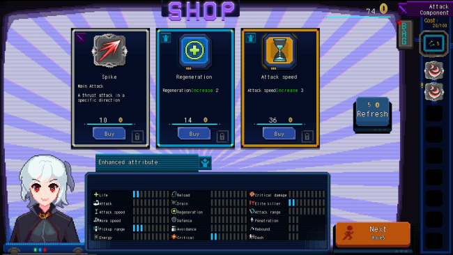 In this game, You can use the enhancement system to freely construct various attack triggers, arrange the order, and make your own skill set. In addition, there are several different characters waiting for you to find out.