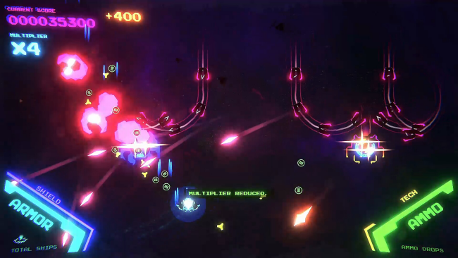 If you’re a fan of the coin-op video arcades and science fiction adventures of the early to mid 1980’s, you’ll love this game and find it both fresh and familiar. Inspirations include Galaga, Xevious, TRON, and The Last Starfighter.