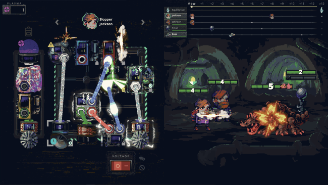 Build your own abilities by wiring together modules. Construct crazy machines, create powerful builds and zap the monsters with insane chain reactions! Every turn you have to decide where you want to put your energy: Into your blaster module? Do you have to crack a healing potion? Or do you store energy in a battery to prepare an even bigger move next turn? Turns can be tactically pushed and pulled forward or backward in time: Dodge volcano eruptions and lightning strikes, slip before your enemies on the timeline or throw them into a devastating Grav-Spike. Your adventure leads you through strange biomes where tricky enemies try to ruin your day. Compose your racks wisely to deal with the procedurally generated and progressively dangerous threats.