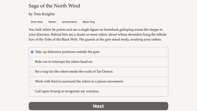 Your people roam the Great Steppe, chased and challenged by the fearsome Tribe of the Black Wolf. Their leader, the shaman Zhan-Ukhel, calls forth savage magic from Chernobog, the god who rules their tribe. Your tribe must have a leader who can call down protection from the gods. That leader is you, and this is your saga.
