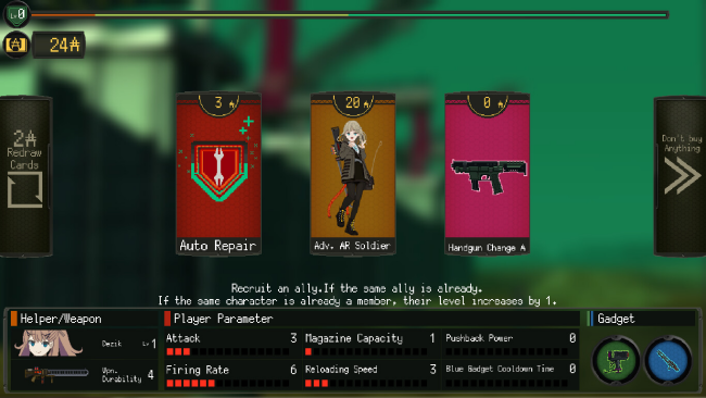 Play as Snezhinka, a fixed-term contract employee at a private military company, and hold the line against waves of hostile mechs in a 2.5D dystopian world. In order to survive against increasingly powerful enemies, you’ll need to use what remains of your meager salary after taxes and other expenses are deducted to purchase cards and develop your combat capabilities.
