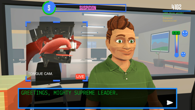 Do you have a vague understanding of human interaction? Well this is the game for you! Your mission: Infiltrate a world of extremely trusting humans, speak to them, and convince them that you’re definitely not a robot. You will learn to move your mouth in certain ways to make words come out. Somehow, speech happens just by waving a wet tongue around and stretching your lips. Nobody knows how this works but in this simulation you will have to learn quickly if you don’t want your face to explode. Unfortunately, there were some corners cut on your safety features. If you make errors your systems will overload and your AI will be forced to relieve pressure by triggering one of the various array of facial explosions and mechanical glitches. As you upgrade your social mechanics, you will have to learn to smile when something is happy and frown when something is sad. There is also the eye contact upgrade, as humans find it suspicious if you look unceasingly into their eyes with a wide smile as they tell you a tragic story.