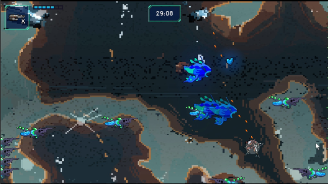 Spectre of Eternity is a game about waking up in worlds you don’t recognize, and trying to survive. Fly around space, avoiding the dangerous enemies and collecting upgrades to your mech. Make it to the end of each level to find your way back home to hopefully find safety. The game includes three levels with gorgeous art, with each level having different groups of enemies to try and best! Pilot your mech expertly and dodge all the projectiles being hurled at you by your enemies. Strategize how to best deal with your enemies by using your target picker and choose between five different modes of firing to blast them out of space! Choose your favorite weapon out of the seven different types and learn how its upgrades effect it! Maneuver your mech to get in the perfect position to deal maximum carnage!