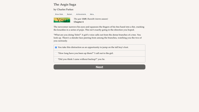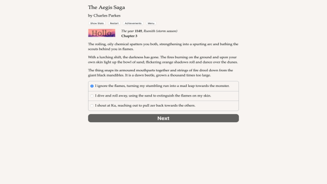 The Aegis Saga is a 280,00-word interactive fantasy novel by Charles Parkes, where your choices affect the story. It’s entirely text-based—without graphics or sound effects—and fueled by the vast, unstoppable power of your imagination.