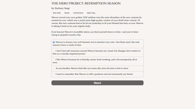 America’s #1 reality show for heroes is back for another season! Harness your superpowers to steal the spotlight, win votes, and save your sister! “The Hero Project: Redemption Season” is the first installment in a new series of interactive novels by Zachary Sergi set in the “Heroes Rise” universe. Your choices control the story. It’s entirely text-based–129,000 words, without graphics or sound effects–and fueled by the vast, unstoppable power of your imagination. In a contest where everyone has superpowers, your opponents can cause earthquakes and explosions, but you’re an average Ani-Powered who wakes up with different animal attributes every day. Will your hawk eyes or canine claws take you far enough in the competition to satisfy the only person who can help your sister? And what happens if winning isn’t enough? As you advance, the decisions you make will transform viewers’ ideas of what it means to be a hero. Will you fight for your own goals, or make sacrifices for the good of society? Strive for what you believe is right by following the rules, or take down the whole system with more radical methods? Would you take wealth and fame over changing the world? Choose Wisely. It’s Redemption Season.