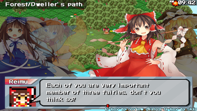 The feeblest bunch in all of Gensokyo are now our heroes?! Hoppin’ & flappin’ Touhou spin-off RPG stretched out by the trio of Sunny Milk, Luna Child, and Star Sapphire! In the fantastical land of Gensokyo there is a school for the fairies. One year ago, Cirno, hoping to avoid being held back for the 9th year in a row, launched an all-out attack on the fairies as they tried to enjoy a relaxing spring break… Now Star Sapphire, the only one who ended up bearing the brunt of the attack, is devising a plan to get back at her! But unfortunately, these fairies aren’t exactly masters of fixing up plans… This story follows the fairy trio on their haphazard, slapstick quest for revenge!