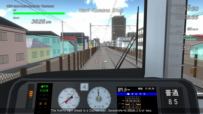 Train operation is performed by tilting the handle called a master controller back and forth. Push it toward you to accelerate, and push it back to brake. Basically, you can proceed with the game only with this movement. In addition, you can perform various operations such as horns, buzzer to contact the conductor, and switching viewpoints. You can also check your driving rating after driving. The Tatehama Electric Railway main line connects Otebashi Station to Tatehama Station. At present, the line can operate up and down 9.6 km of this line from Hamazono Station to Tatehama Station. The train departs from Hamazono Station, and after passing Tsusaki Station, it goes through a tunnel and runs along the sea until it reaches Kaigan Koen Station. After passing Komano Station, the train goes underground and reaches the terminus at Tatehama.
