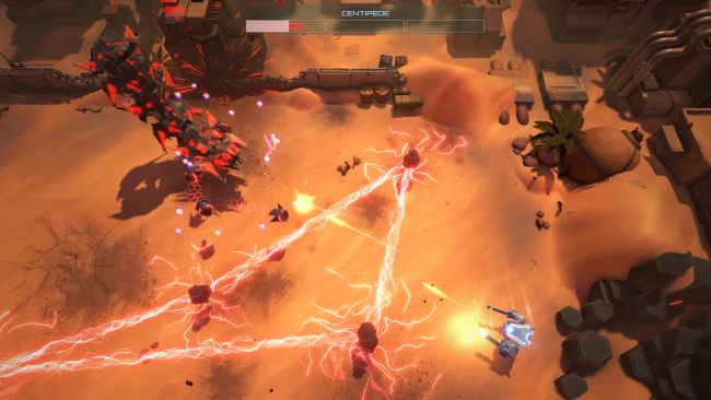You play as a charming Mech unit that has awakened to discover a world overrun by corrupted AI. In order to survive, you must master your weapons and learn how to fight back against every enemy. The search for your missing pilot and friend will bring you to different spectacular locations where the impact of the AI upraise will be seen. You’ll encounter increasingly challenging threats that will test all your combat skills. However, there will also be ways for you to upgrade and customize your arsenal. Levels are short, intense, and tightly measured challenges designed for you to experience a fast-paced and dynamic combat system. Hiding is not a valid strategy. The different enemy attacks will push you to move all around the map trying to identify their weakness and respond with lethal attacks. As you play, new weapons will unlock, ranging from shotguns and auto-rifles to plasma boomerangs and rocket launchers. Each weapon can handle better different situations and enemies: some are devastating against big swarms of enemies while others are better suited for heavily armored foes. You can equip them in pairs and experiment to find your favorite combination for every occasion. Your possibilities don’t stop there. Apart from weapons, you can equip Heat Attacks. These special skills are powered by the orbs left behind every time an enemy dies. Using them wisely is a key element of Uragun’s combat.